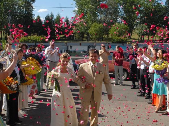 Только что расписавшиеся молодожены подвергаются обязательной «казни»: посыпанию зерном и другими предметами. О том, как не навредить молодоженам и не испортить фотографии, читайте здесь.