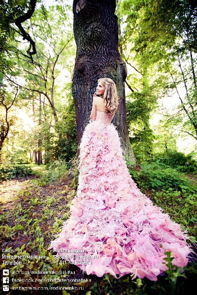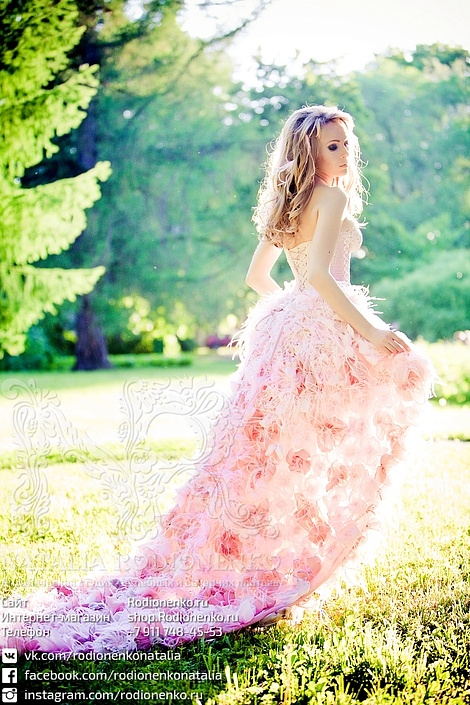 РОЗОВОЕ СВАДЕБНОЕ ПЛАТЬЕ С ПЕРЬЯМИ