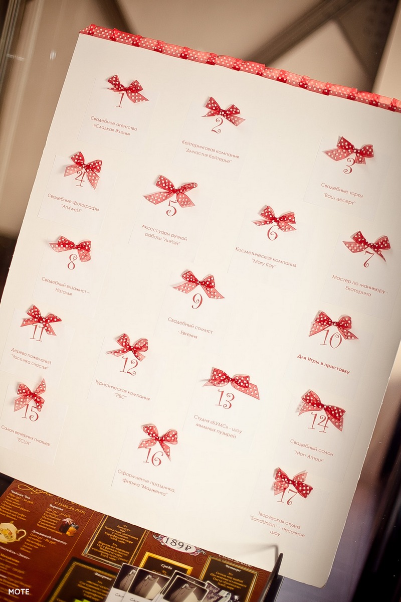 Все желающие могли попробовать угощения, предоставленные кейтеринговой компанией «Династия Кейтерье», а также продегустировать начинки свадебного торта от компании «Ваш десерт». Также вниманию гостей от компании «Art4weD» были предоставлены фото-книги, магнитики и примеры фоторабот. Желающие на месте могли заказать фотографов и различные фото-аксессуары.