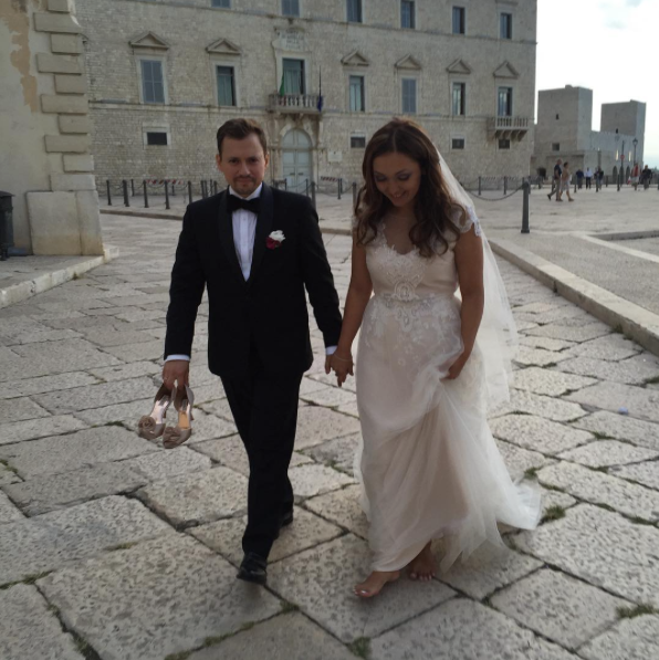 В минувшую пятницу стало известно, что звезда сериалов "Универ" и "СашаТаня" Андрей Гайдулян и его невеста Диана Очилова некоторое время назад расписались в Таганском загсе, а в эти выходные пара сыграла свадьбу. Церемонию было решено провести в Италии, в соборе городка Трани, а застолье с друзьями - в ресторане, расположенном на берегу моря. Фотографиями с торжества Андрей и Диана уже поделились в Instagram.