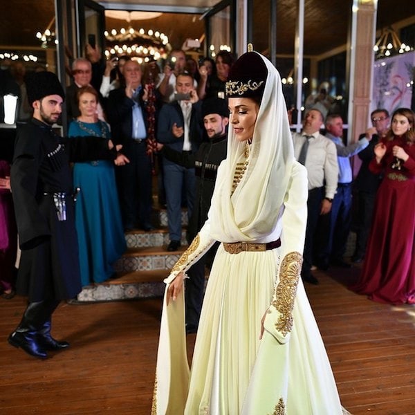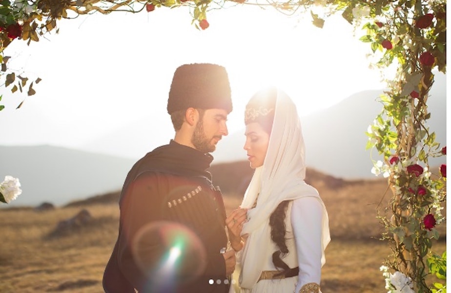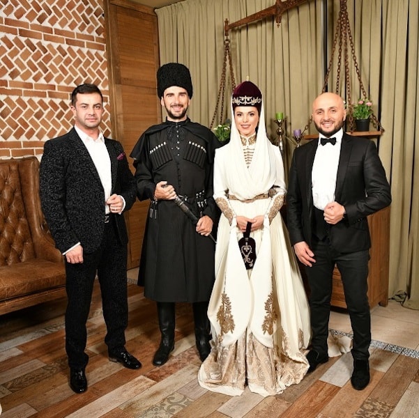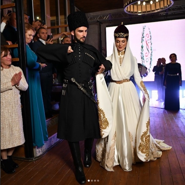 Как стало известно, ее свадьба со Стефано Тиоццо, прошла на ее малой родине, по всем кабардинским традициям и в национальных костюмах. Красавица предстала перед гостями в шикарном платье с расшитыми золотом подолом и рукавами ну, и конечно же, в национальном головном уборе.