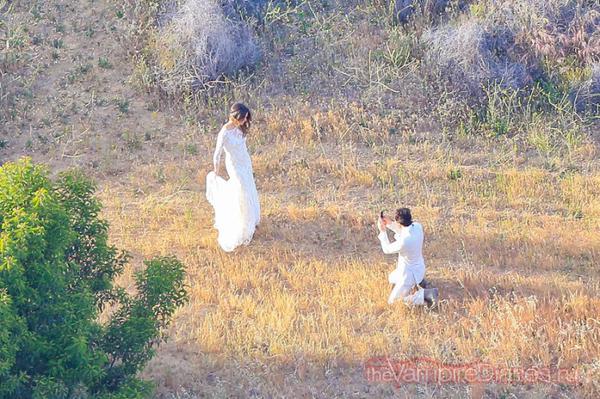 36-летний Иен Сомерхолдер и 27-летняя Никки Рид поженились. Счастливая пара попалась фотографам, орудующим с вышины птичьего полета фототехникой, в Санта-Монике. На молодоженах были надеты белоснежные наряды: жених облачился всмокинг, а невеста в узкое платье с открытой спиной и без фаты. Влюбленных окружали только наиболее близкие – друзья и родственники.